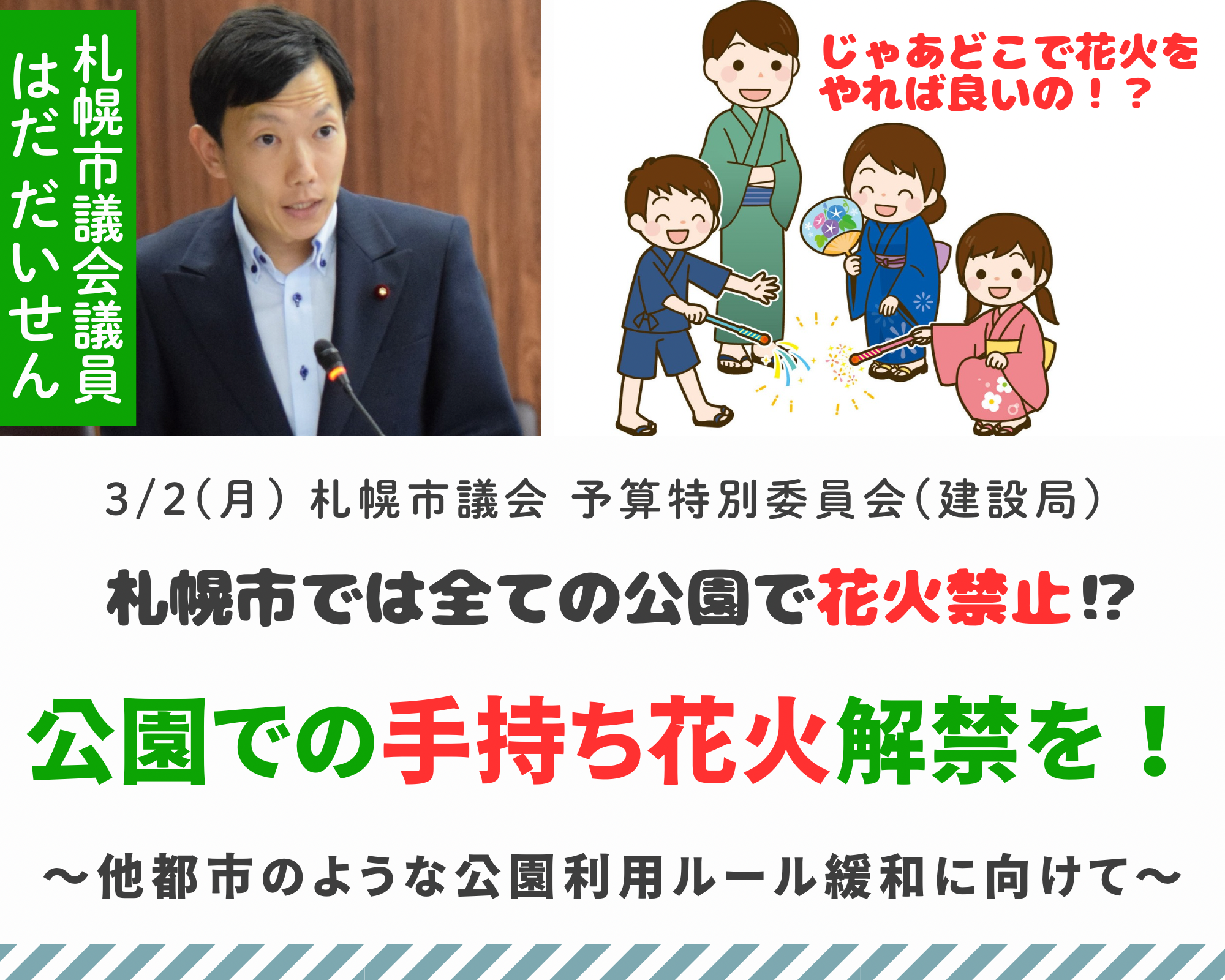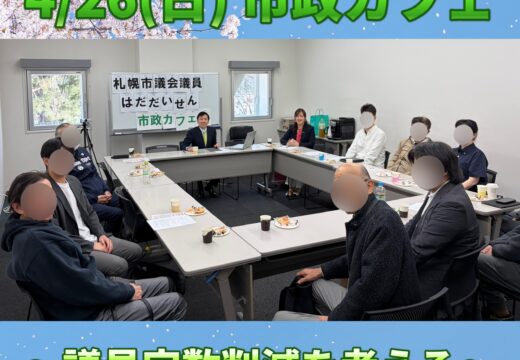 今朝は、地下鉄「円山公園駅」の大通西25丁目交差点で朝のご挨拶をさせて頂きました。気温マイナス6℃、雪が舞う冬らしい朝でした。本日も、市長と市議会議員のボーナス引き上げが議会で可決されたことのご報告と、日本維新の会が掲げる「身を切る改革」の理念と実践についてお話させて頂きました。… pic.twitter.com/lHdjoYhmr1— はだ だいせん(波田大専)【札幌市議会議員/中央区/日本維新の会】 (@Daisen1989) December 18, 2024