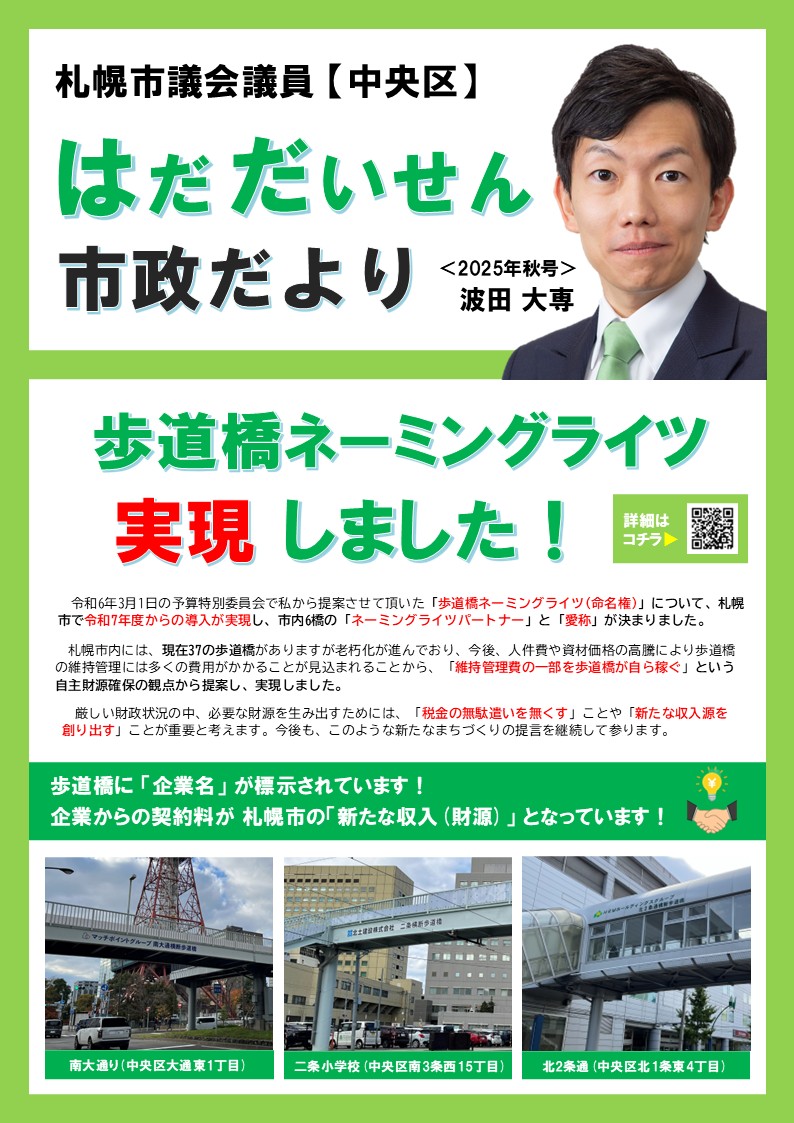 — はだ だいせん(波田大専)【札幌市議会議員/中央区/日本維新の会】 (@Daisen1989) December 18, 2024