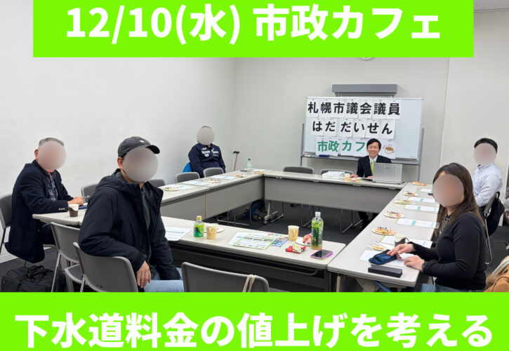 12/10(水)、カナモトホールにて、第17回目の「はだだいせん 市政カフェ」を開催し、会場6名、オンライン1名の方々にご参加頂きました。