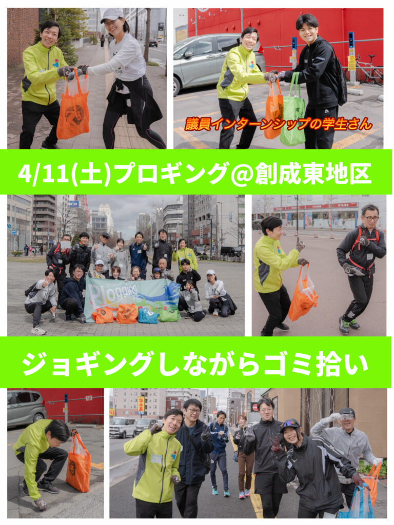 4/11(土)、恒例の「札幌まちなかプロギング」で、ジョギングをしながらゴミ拾いをさせて頂きました。